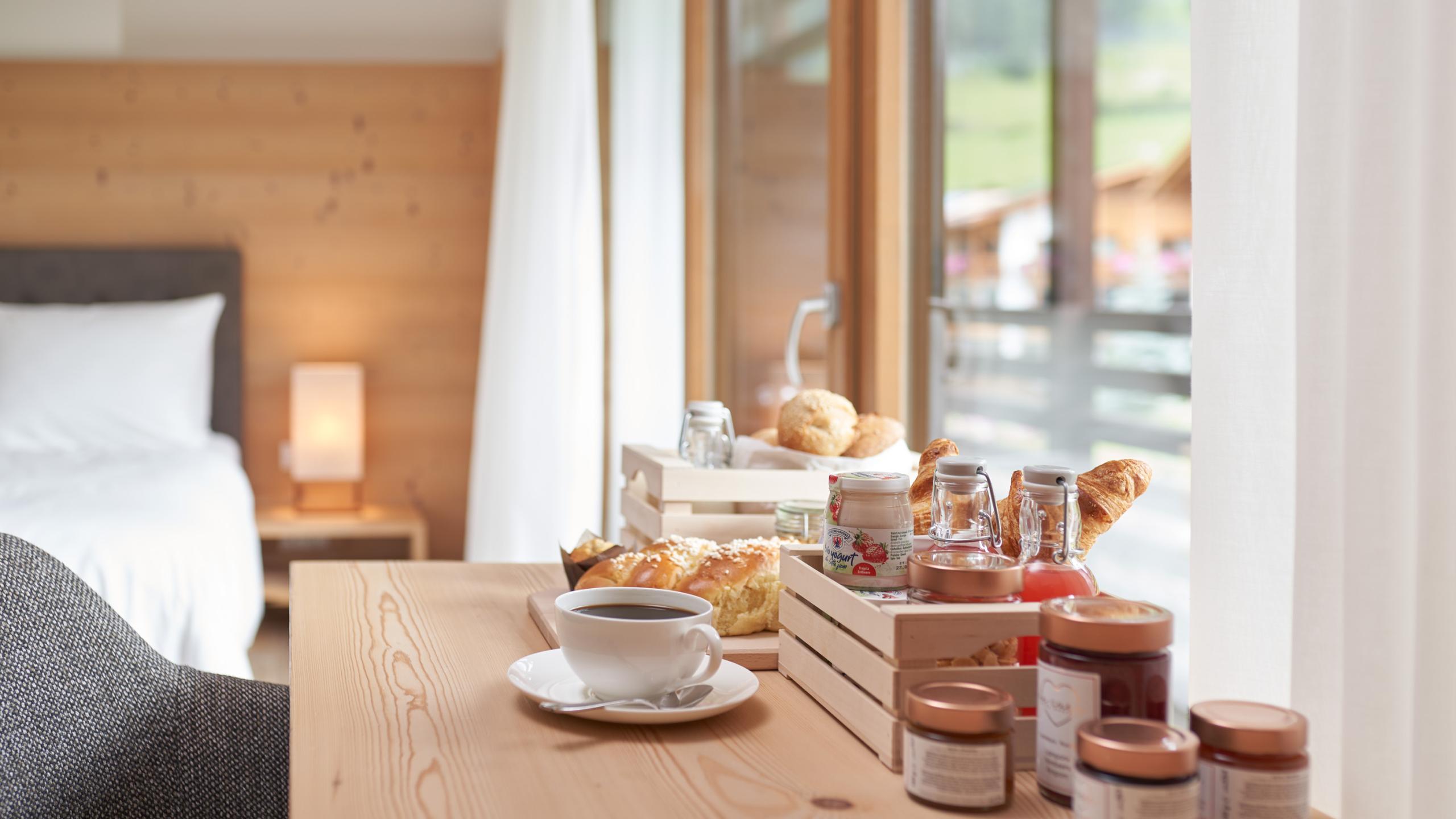 In the morning, a small yet delicious breakfast awaits you, served in convenient boxes that can be customized to your taste, featuring selected regional products.